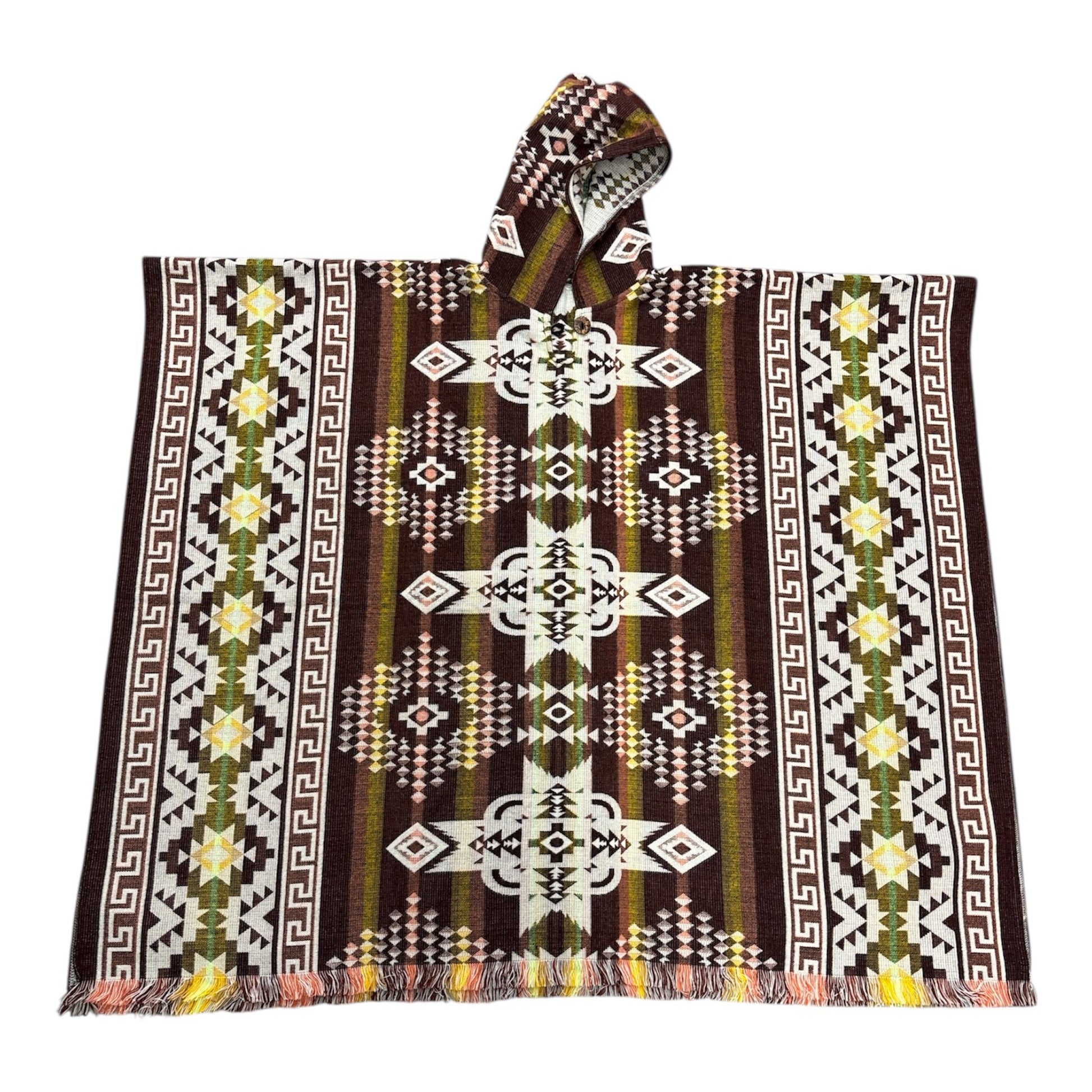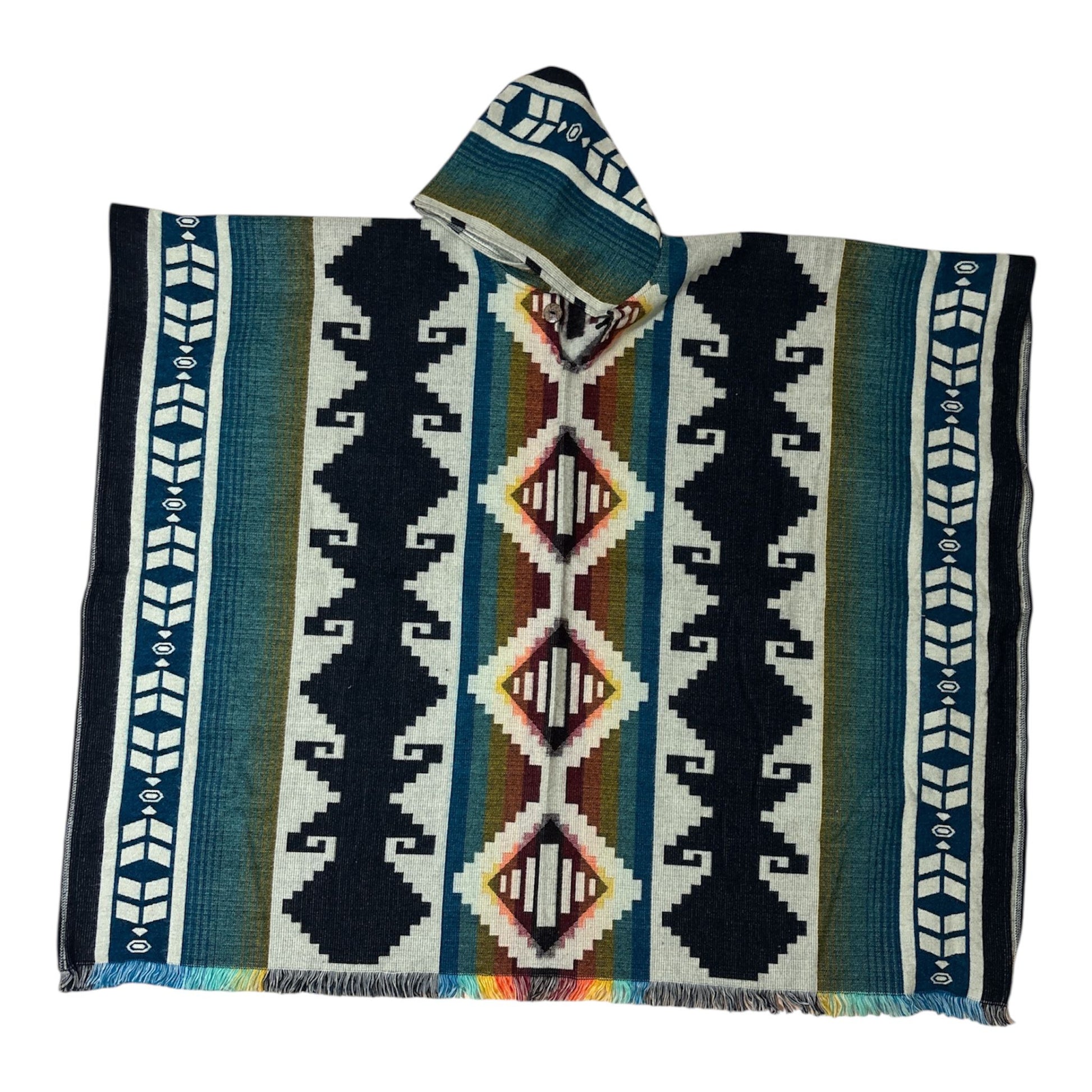 To manufacture an affordable poncho, its fibers need to contain a mixture of acrylic and either alpaca or sheep wool. The poncho measurements are as follows: 48 inches in width and 38 inches in length (including the fringes). One size fits most, fits Small -4XL